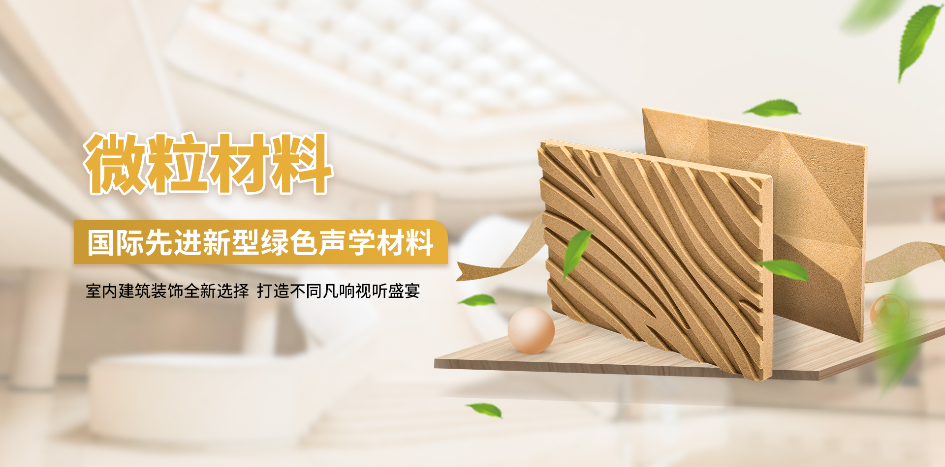 微粒材料是一種新型綠色裝飾材料,具備優(yōu)異的聲學(xué)性和物理性能。該材料是以天然砂粒或經(jīng)環(huán)保處理的固廢顆粒為骨料,以環(huán)保膠凝劑,通過壓振工藝,生產(chǎn)的具有大量相互連通的微小空隙的多孔材料。